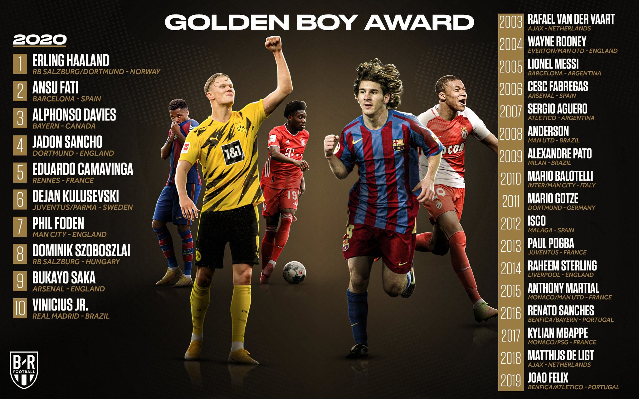 B R Football Golden Boy Winner Erling Haaland Joins Some Star Studded Company